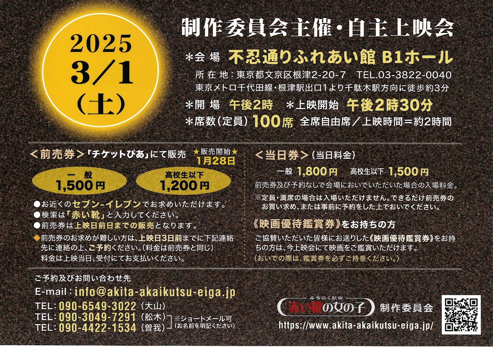 ・前売券の販売締め切りは、上映会前日の午後5:00となります。